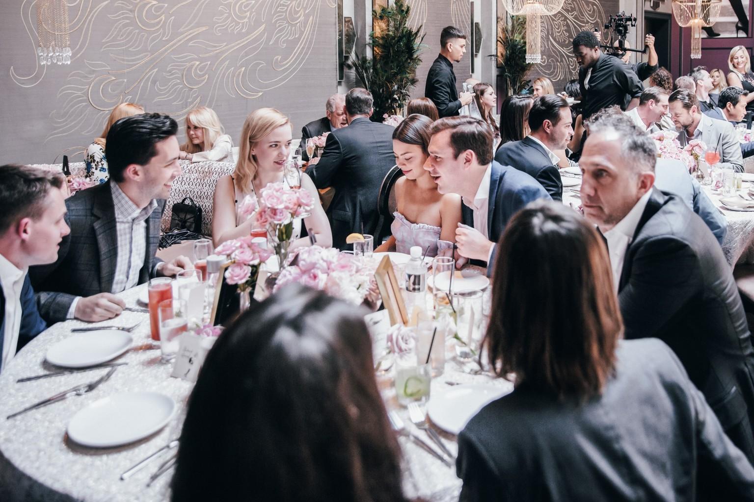 During the cocktail hour, Nina’s friends and family, fellow Playmates, Playboy executives and guests gathered for drinks and hors d’oeuvres. Bartenders served a menu of appropriately-named drinks, including the Femlin (Cava, peach and Campari), the Drama Starter (Avion Silver tequila, espresso, cold brew, Godiva liquor and vanilla), and the Green with Envy (cucumber-infused Belvedere vodka, St. Germain liqueur, cilantro and jalapeño nectar). Actress Arielle Wyatt tells Playboy she wasn’t surprised that Nina, whom she describes as her “bestie from another teste," had earned the 2018 Playmate of the Year title. She says, "She wanted this so badly, and she put so much work into it."