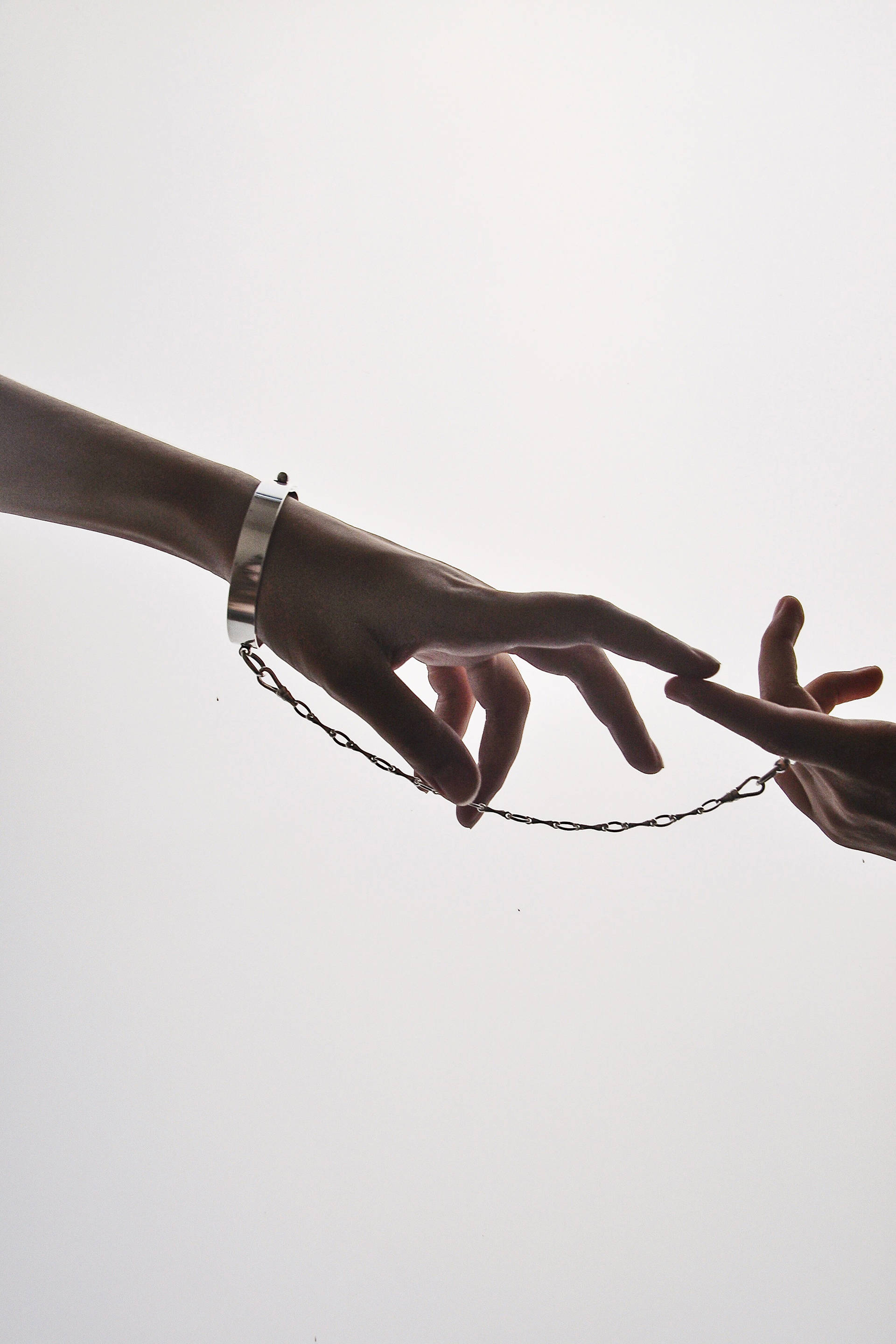 On a gray and rainy day in the bustling heart of the Marais, I find myself bound to Betony Vernon. This is not a figurative statement. The American-born, Paris-based designer, clad in black satin, with her fiery red hair cascading over her shoulders, has slipped a small gold ring on my finger; the ring is attached to a chain leading to a bracelet on her milky white wrist.